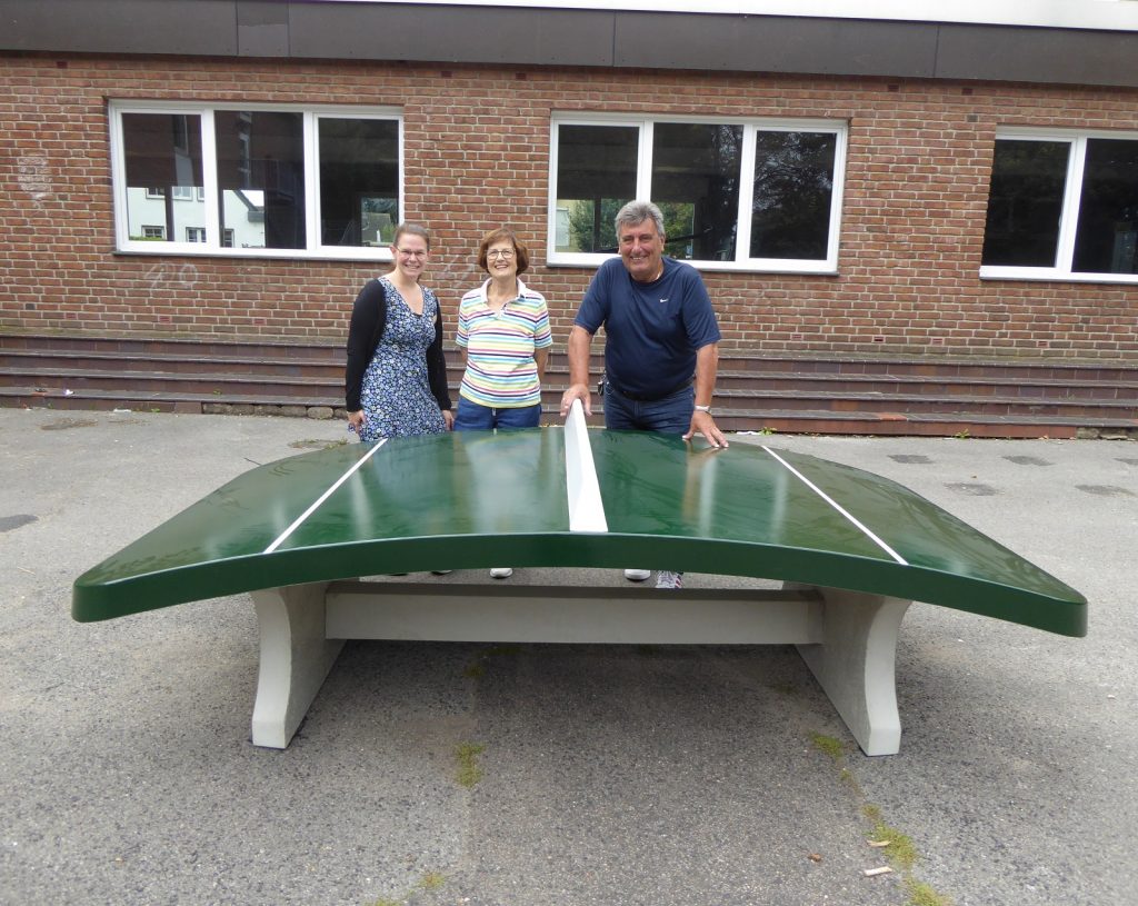 Heute konnte im Innenhof des Jugendzentrums (JuZe4 Teens) Im Katzenbungert eine Teqball-Platte an die Jugend übergeben werden. Die Leiterin der Einrichtung Milena Kleinz zeigte sich begeistert. Diese neue Sportart ist ein Mix aus Fußball, Tennis und Tischtennis und wird mit Fuß, Kopf und Knie gespielt. Auf Initiative von Sieglinde Djallo, Stadtteilforum Oberaußem und mit der Unterstützung vom Ortsbürgermeister Hans-Josef Weck konnte die Beschaffung dieses Sportgerätes über die Aktion „Bürger.Mit.Wirkung“ ausgeführt werden. Vor kurzer Zeit wurde bereits ein zweites Fußballtor auf der Wiese neben dem Jugendzentrum aufgestellt. Diese Maßnahmen sind ein wichtiger Beitrag für die sportlichen Aktivitäten der Kinder und Jugendlichen.