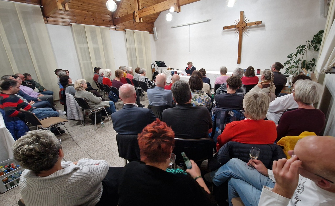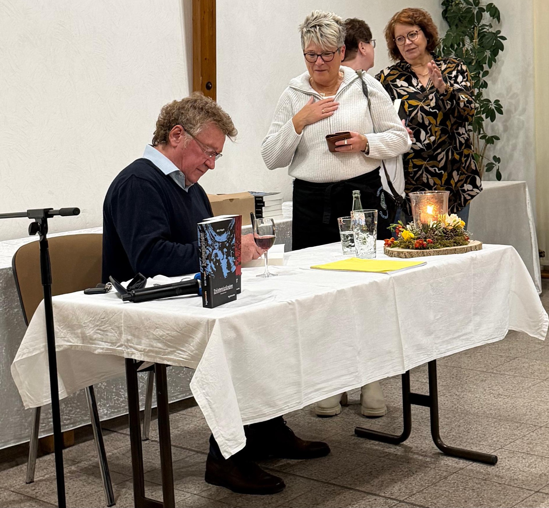 Vor fast 50 Zuhörern stellte der Kölner Autor Willi Vögeli im Pfarrheim seinen zweiten Kriminalroman „Kollateralschaden“ vor.