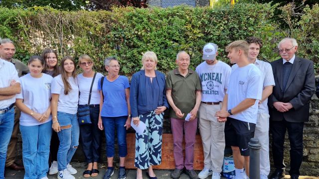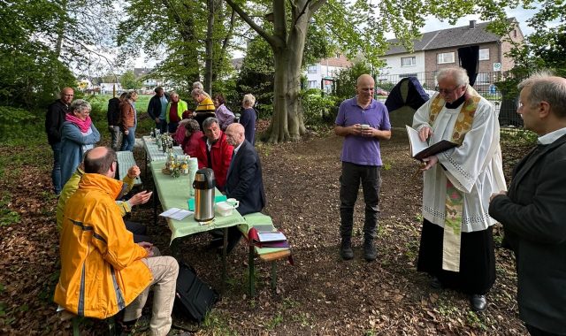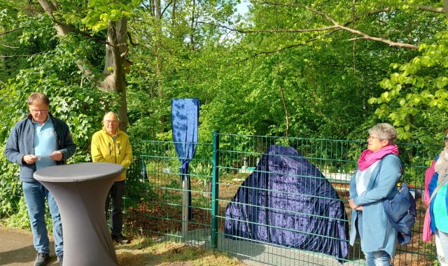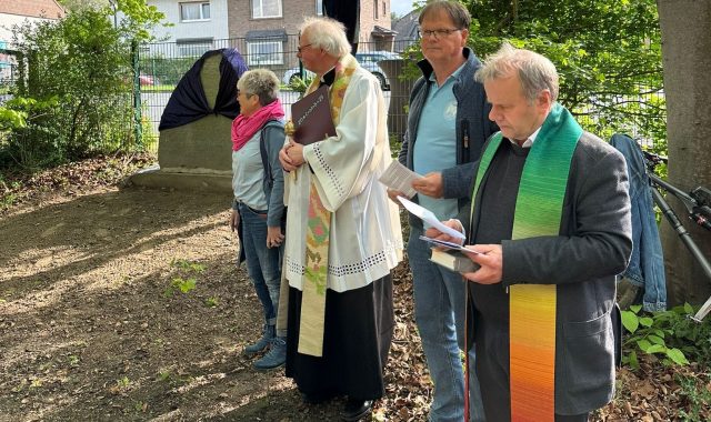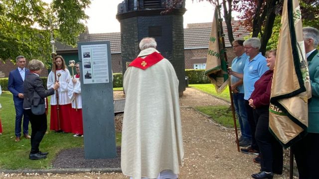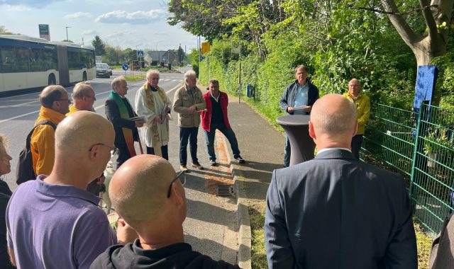Zusammen mit Msgr. Achim Brennecke, Pfarrer Matthias Bertenrath und vielen Bürgern fand die Einweihung des Denkmal von Walter Balscheit am Eulenturm statt.