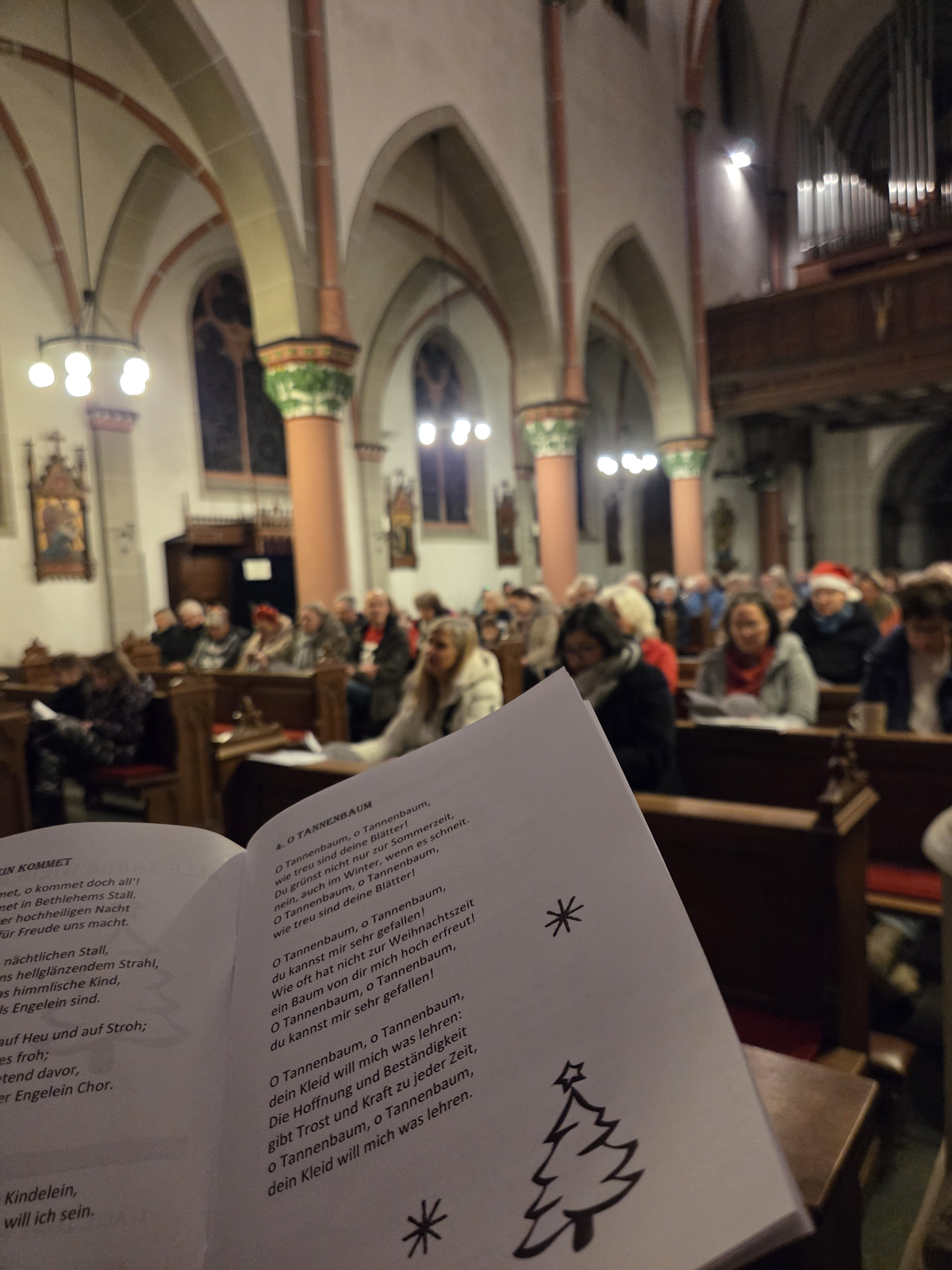 Am 4. Advent erfüllte das traditionelle Mitsingen erneut die Kirche mit vorweihnachtlicher Atmosphäre. Über 150 Besucher ließen sich von den gemeinsamen Liedern und der festlichen Stimmung begeistern. Vor und nach dem musikalischen Teil blieb reichlich Zeit für Gespräche und Begegnungen.