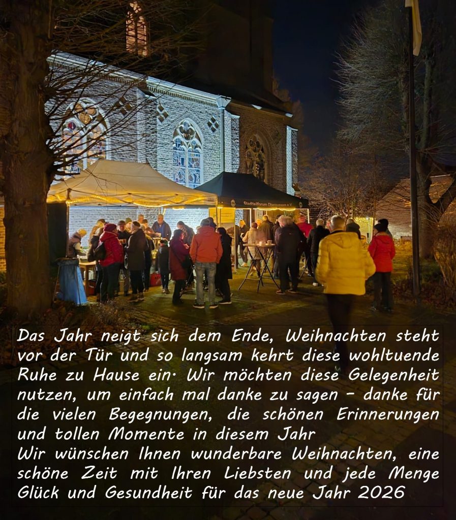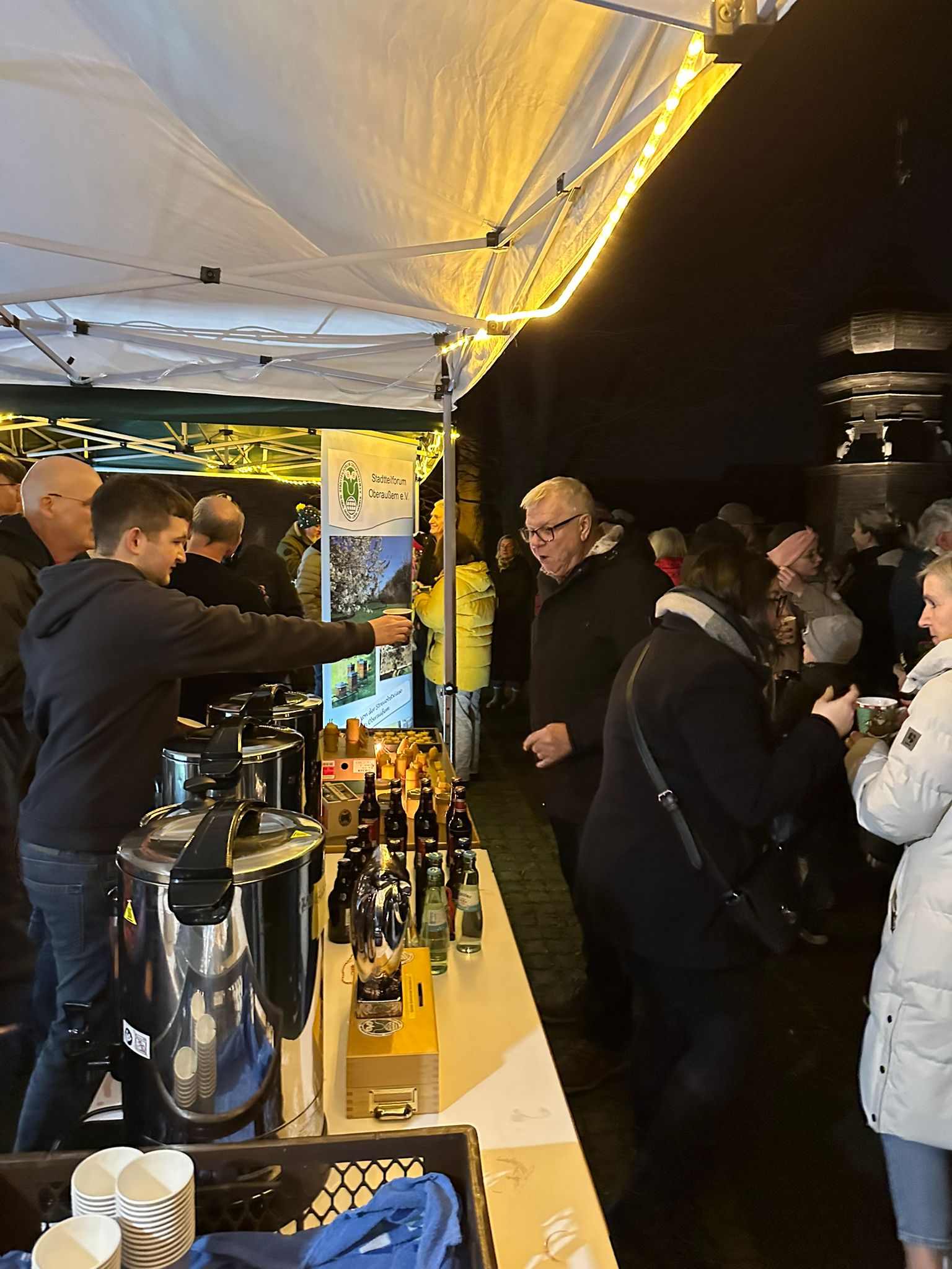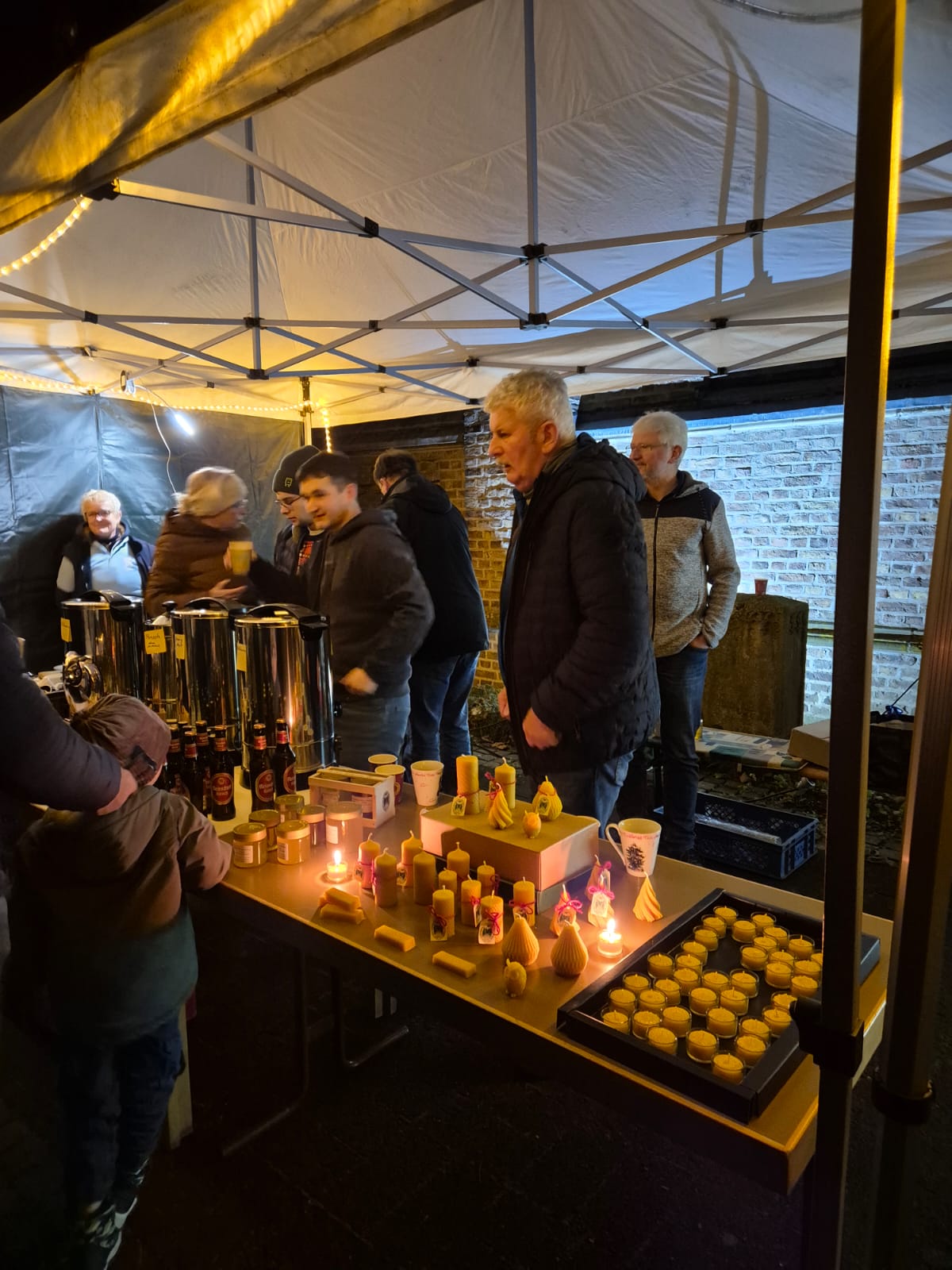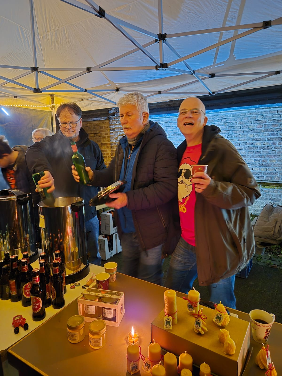 Vor der Kirche erwartete die Besucher ein gemütlicher Stand mit Glühwein und frischen Waffeln. Premiere feierte in diesem Jahr unser Honig‑Met, der sofort großen Anklang fand.