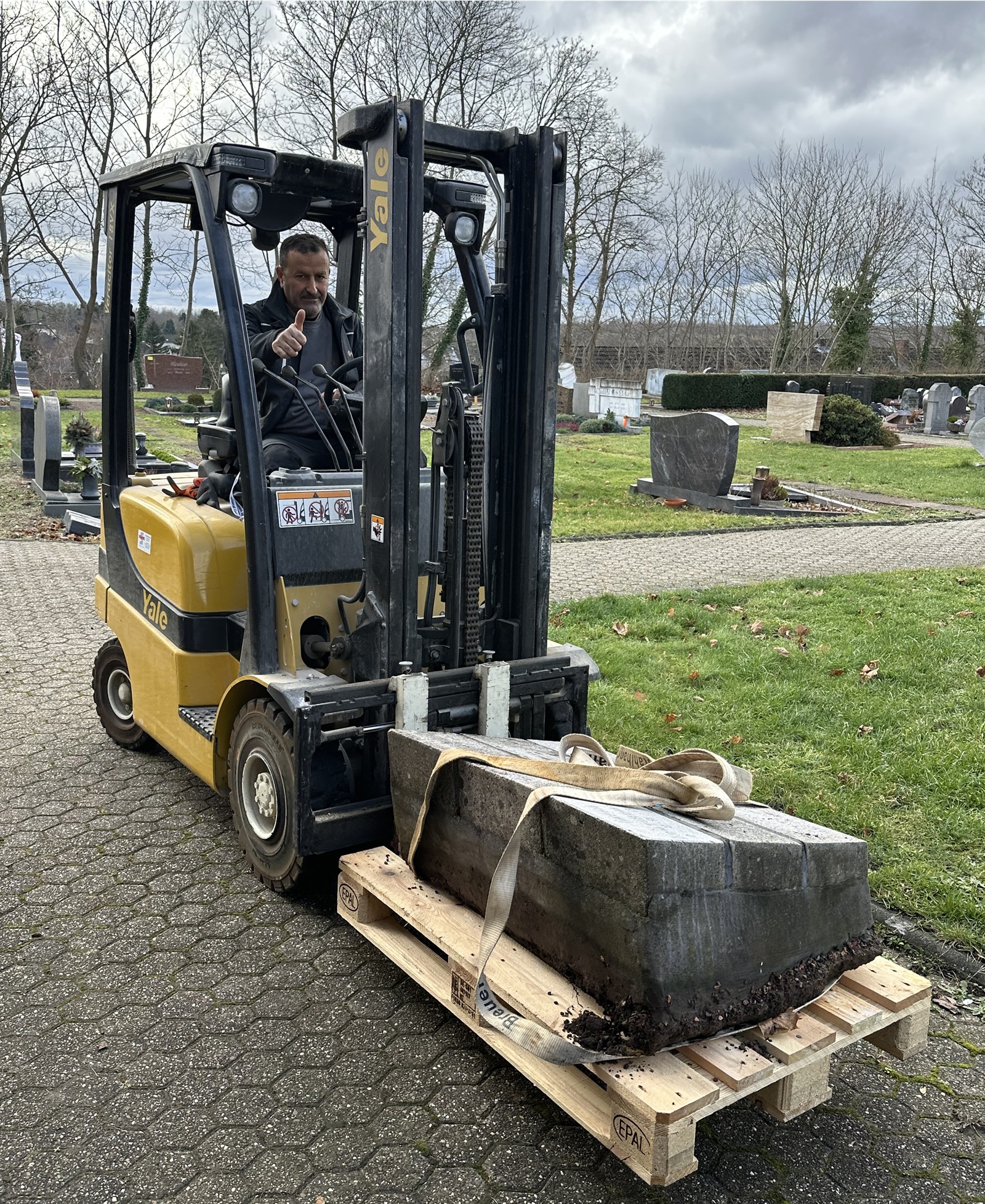 Zuletzt wurde der Stein von Johann Strack- Zur Ville 20- vom Team des Stadtarchivs geputzt.