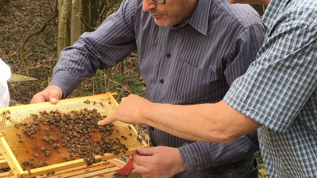Eines unserer neuesten Projekte sind die Bienen. Auf unserer ökologisch betriebenen Streuobstwiese wurden 2018 Bienenstöcke aufgestellt. Gleich in der Nähe hatte über viele Jahrzehnte auch der Oberaußemer „Imker Ellinger“ seine Bienenstöcke. Neben der Bestäubung der Obstwiese geben die Bienen wertvollen Honig.