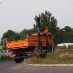 An diesem Montag fand eine kurze Besprechung zwischen der Stadt Bergheim und dem Stadtteilforum/Radfahrverein statt und dann ging es auch schon los. Frank Scherf trägt gekonnt den Erdhügel ab. Der erste Versuch, den Hügel ab zu tragen, musste ja nach wenigen Versuchen eingestellt werden, weil das Gerät einfach zu klein war. Mit dem etwas größeren Lkw klappte es hervorragend.