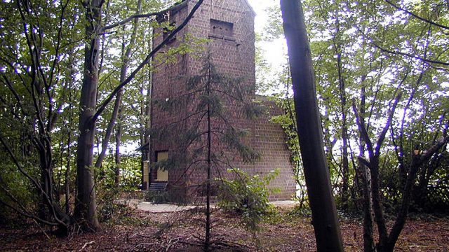 Turmwart Heinz Füser vom Oberaussemer Stadtteilforum kontrolliert die Nistkästen im Eulenturm, die er eigens für Greifvögel gebaut und montiert hat. In der Hoffnung dass die Kästen von Vögeln angenommen werden, hatte sich die Gruppe Umwelt & Dorfverschönerung vom Stadtteilforum, der Hege und Pflege des Turmes und dem dazugehörenden Wäldchen angenommen.