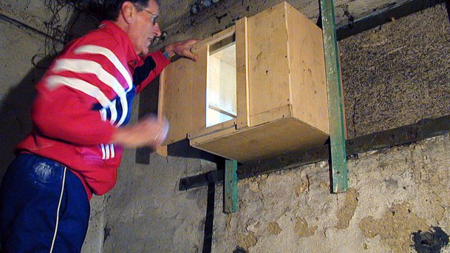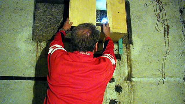 Heinz Füser baute daraufhin sofort einen neuen Brutkasten mit viele Liebe und Akribie. Die Breite des neuen Nistkasten dürfte ca. 1 m sein. Wichtig dabei ist, dass der Nistbereich vom Eingangsbereich optisch getrennt ist.