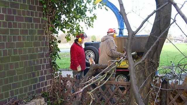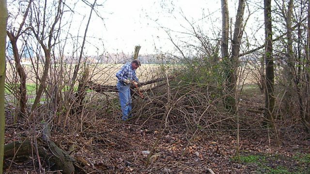 Am 22.03.05 führte die Gruppe Umwelt in Zusammenarbeit mit dem Bauhof Niederaussem Schredderarbeiten im Wäldchens rund um den Eulenturm durch.