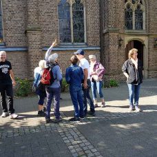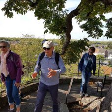 Weitere Stationen waren die ehemalige Schmiede Decker, der Theodor-Bondü-Platz sowie die Kirche St. Vintenzius und deren Umfeld. An der sogenannten Grass-Kastanie oberhalb des alten Ortskerns erfuhren die Teilnehmer die Hintergründe zur Beschreibung dieses Ortes in dem bekannten Roman „Die Blechtrommel“ von Günter Grass, was auch zur Namensgebung dieser alten Kastanie führte.