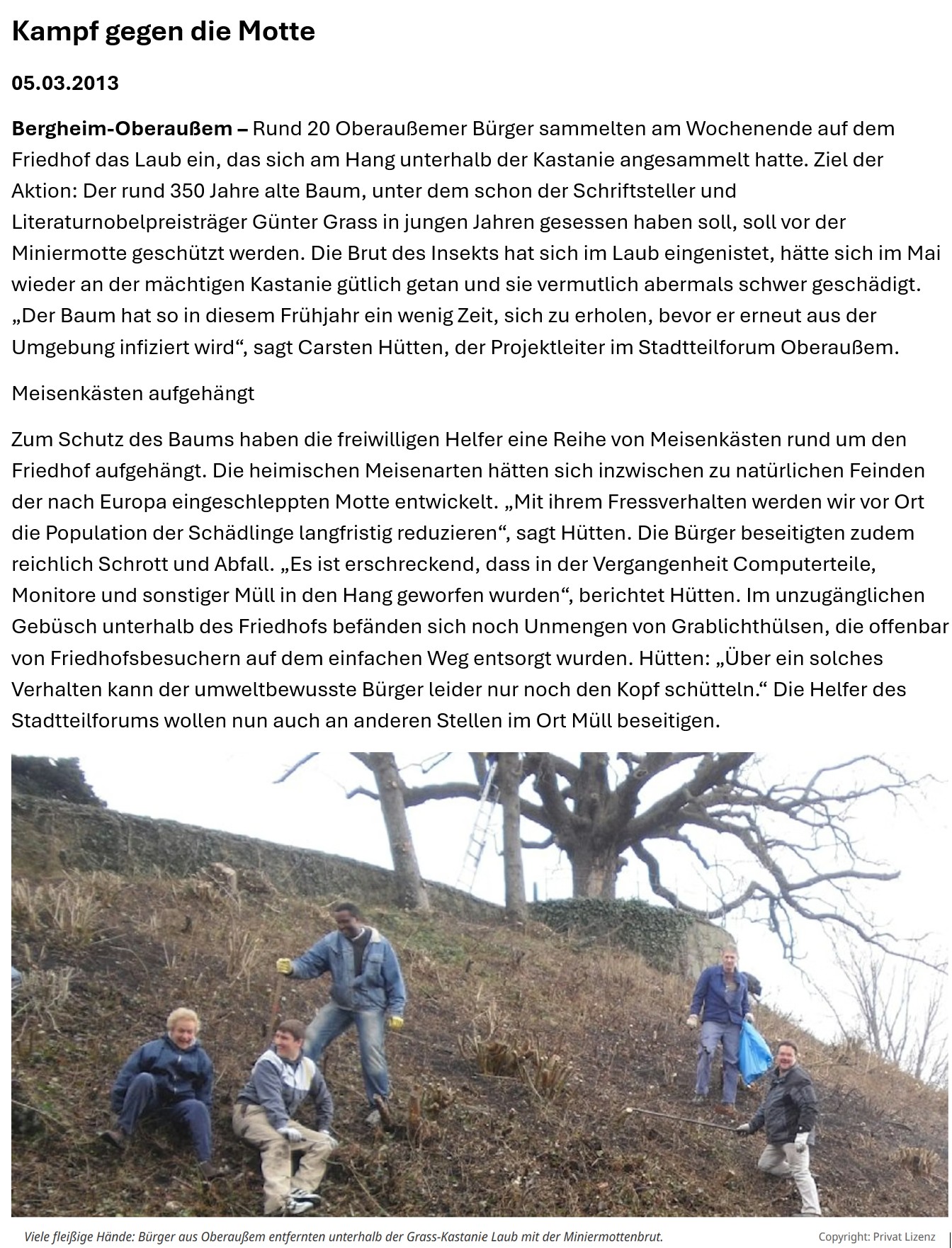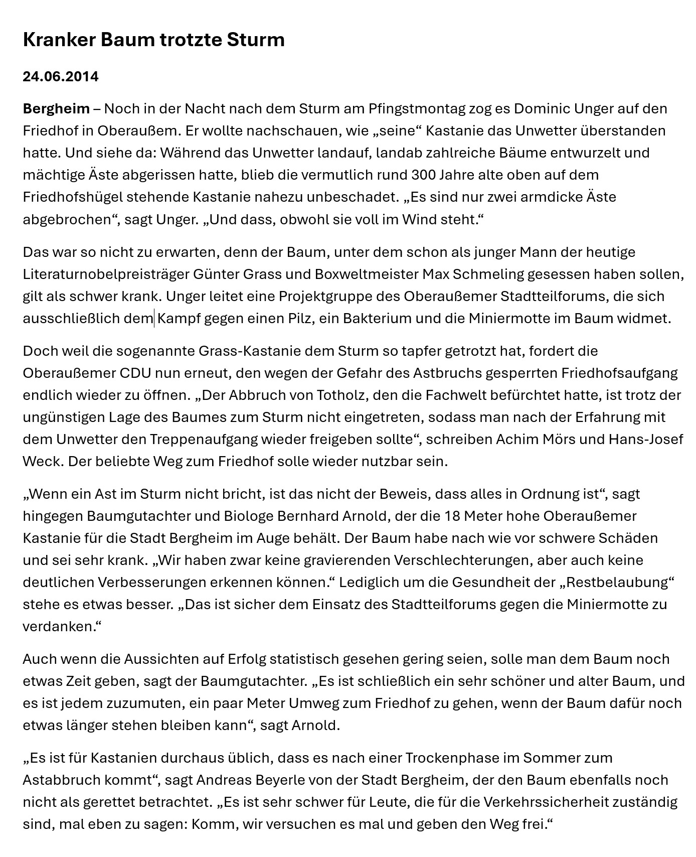 Die Grass-Kastanie ist gemäß Ziffer 32 der alten Schutz VO von 1935 ein eingetragenes Nuturdenkmal.