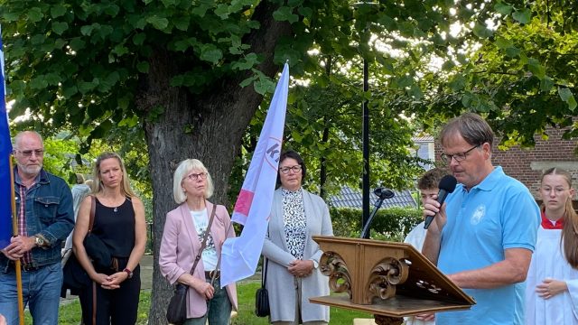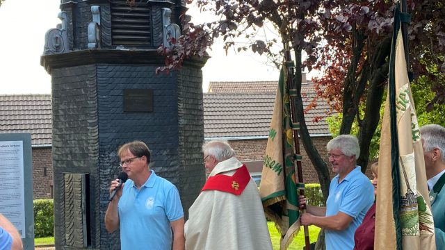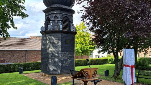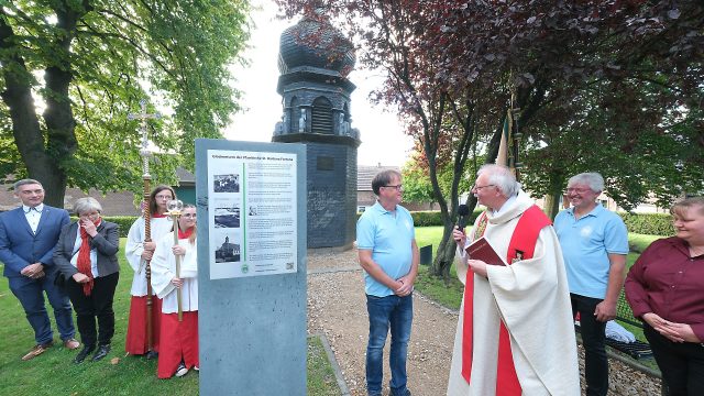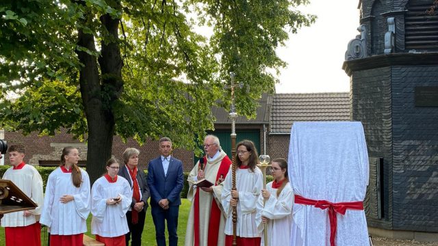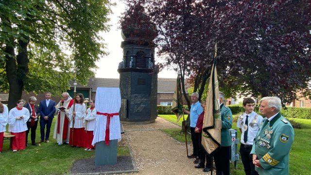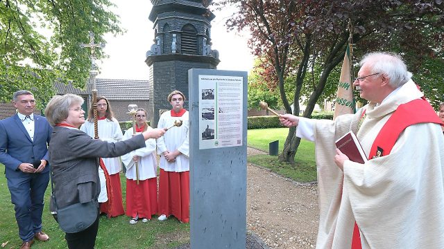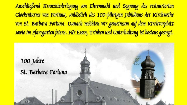Am Kirchweihfest wurde in diesem Jahr ein besonderes Jubiläum gefeiert. Vor 100 Jahren wurde die St. Barbara-Kirche in Fortuna geweiht. Aufgrund der Erschließung vom Tagebau Bergheim musste neben der Ortschaft Fortuna auch die St. Barbara-Kirche abgerissen werden. Auf Initiative des damaligen Bürgermeisters Bernd Poulheim und Bernhard Walter wurde der Glockenturm im November 1983 abgebaut. Bernhard Walter und seine Mitarbeiter zerlegten den Turm in mehrere Teile und bauten ihn neben der St. Vinzentius-Kirche neu auf. Im Fundament wurde der Originalgrundstein der St. Barbara-Kirche eingelassen. Im Juni 1984 wurde unter Beteiligung zahlreicher Menschen der Glockenturm am neuen Ort gesegnet und eingeweiht.