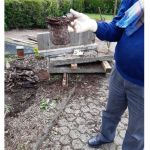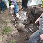 Die Betonplatten wurden wieder auf den Treppenabsatz platziert und mit einer Folie abgedeckt. Gegen 15:00 h waren die Erdarbeiten erfolgreich beendet.