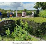 Uli Reimann berichtete von einem Erlebnis aus dem Jahre 1953. Damals wurde der verstorbene Pfarrer Heinrich Meurers aus Fortuna beigesetzt. Der Kellerraum wurde geöffnet.Uli Reimann nutzte eine Situation, als von den Arbeitern weit und breit keiner zu sehen war und stieg in den Raum. Die Bilder habe er jetzt noch vor den Augen. Er habe Särge gesehen, die auf in die Wand eingelassenen Eisenstangen standen. Nach seiner Erinnerung müsste der Zugang seitlich der Abdeckung des Priestergrabs hier sein. Dabei zeigte er auf einen Bereich zwischen Hecke und Gedenkstein. Uli Reimann machte auf eine Bodensenkung aufmerksam und benannte als Ursache hierfür den Bau eines Luftschutzbunkers während des 2. WK, der tief im Boden unter dem Priesterdenkmal verlaufen dürfte. Herr Fischer erklärte, wie man den Boden über einer Betonplatte abtragen könne. Gleichzeitig könnte man auch die Hecke entfernt. Wenn Größe und Lage der Platte bekannt ist könnte man weitere Rückschlüsse über den Zugang treffen.