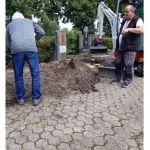 Am Mittwoch, dem 01. Juni 2022, 09:00 Uhr, trafen sich an der Krypta Heinz und Jacob Schieffer und Domenik Kummer vom Bestattungshaus Schieffer OHG aus Brauweiler, Peggy vom Betriebshof Niederaußem, Norbert Schumacher, Peter Dörr, Friedel Geist sowie Hans Griese um die erforderlichen Arbeiten fortzusetzen. Kurzfristig anwesend war Frau U. Zacher, Untere Denkmalbehörde. Monsignore A. Brennecke erschien zu einem späteren Zeitpunkt.
