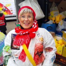 Das Wurfmaterial für den Rosenmontagszug wurde in diesem Jahr von den Zugteilnehmern des Stadtteilforums umweltfreundlich in Papiertütchen verpackt. Neben Süßigkeiten wurden außerdem Blühmischungen für den Garten und Äpfel geworfen.