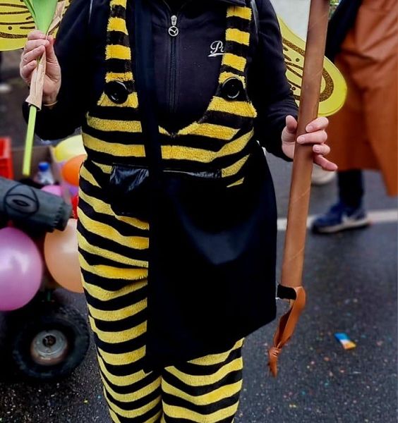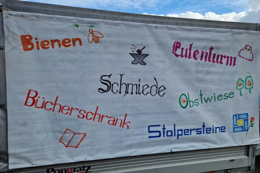 Nach vier Jahren hat das Stadtteilforum wieder am Oberaußemer Rosenmontagszug teilgenommen. Passend zum 20 jährigen Jubiläum wurde eine Auswahl der Projekte aus den vergangenen Jahren dargestellt, entweder als Kostüme oder als Zeichnungen auf dem Bagagewagen. Die Schmiedegruppe nahm zum ersten Mal mit selbst gebastelten Kostümen, Amboss und Schmiedehämmer am Umzug teil. Als Wurfmaterial hatten die Teilnehmer zuvor wieder in Handarbeit viele Saatgut-Tüten für Blühmischungen abgepackt. Aber auch Wurfmaterialen in Form von Süßigkeiten kamen nicht zu kurz.