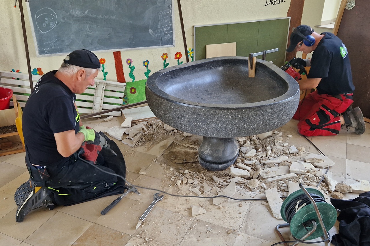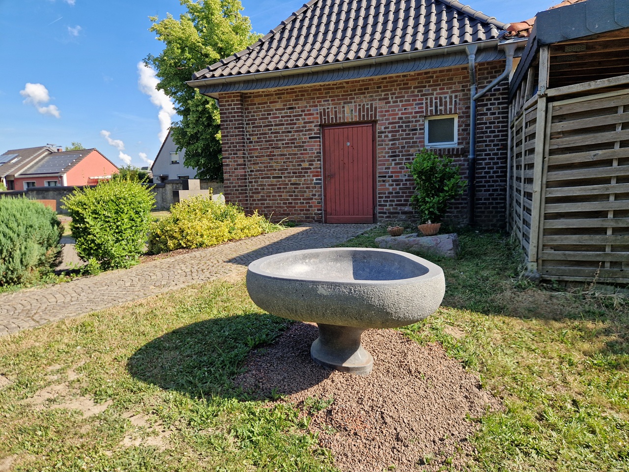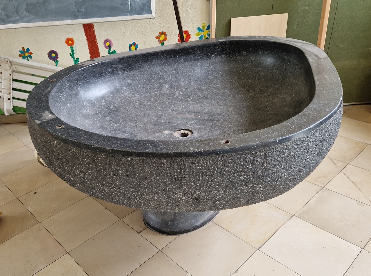 Der Trinkbrunnen hatte einst 4 Wasserspender, die am Rand des Beckens befestigt waren und aus denen die Kinder frisches Wasser trinken konnten. Später wurden die Wasserspender entfernt.