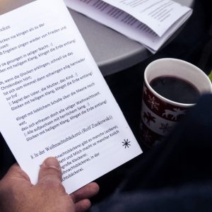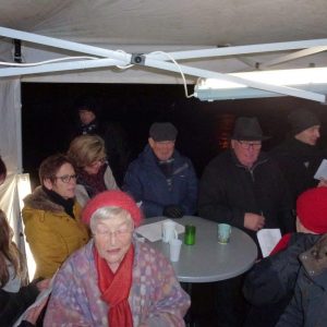 Aus einer spontanen Idee wurde innerhalb von knapp zwei Tagen nach dem Motto Loss mr Weihnachtslieeder singe ein Singen am Weihnachtsbaum organsiert. Trotz regnerischem Wetter trafen sich über fünfzig Mitbürger am Weihnachtsbaum vor der Pfarrkirche St. Vinzentius, um gemeinsam Weihnachtslieder zu singen. Neben dem Singen gab es noch genügend Zeit, um einen Plausch bei Glühwein und frisch gebackenen Waffen zu halten.